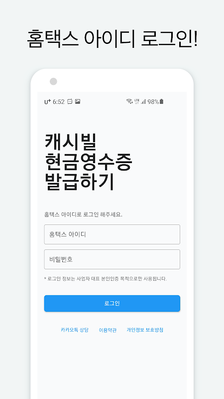 Puede emitir inmediatamente un recibo en efectivo con su ID de Hometax.