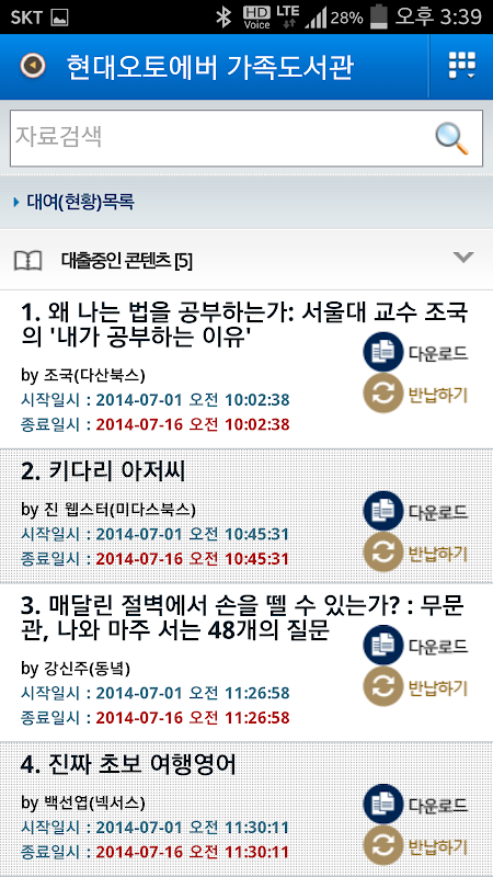 Aplicación móvil de la biblioteca familiar proporcionada por Hyundai Auto Ever.
