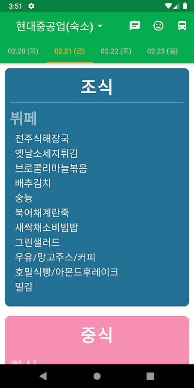 * Esta es una aplicación no oficial que proporciona un plan de comidas y el horario del autobús.