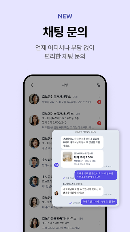 No solo los propietarios, sino también los inquilinos y administradores de alquileres pueden anunciar sus casas en Zigbang de forma rápida y sencilla. Al anunciar su casa en Hogangnono, esta se mostrará simultáneamente en la app de Zigbang y podrá consultar las propiedades en sitios web inmobiliarios cercanos, lo que agiliza la transacción.