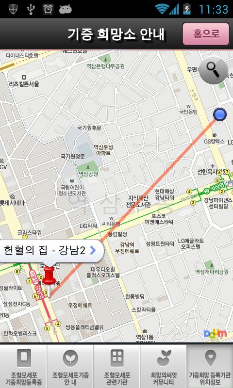 ㅇ 위치기반 조혈모세포 등록기관 위치 안내 기능