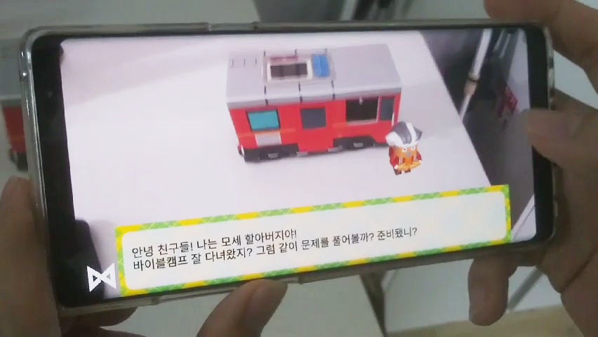 바이블 캠프 버스에 증강현실 앱을 켜고 카메라를 가져다 대면