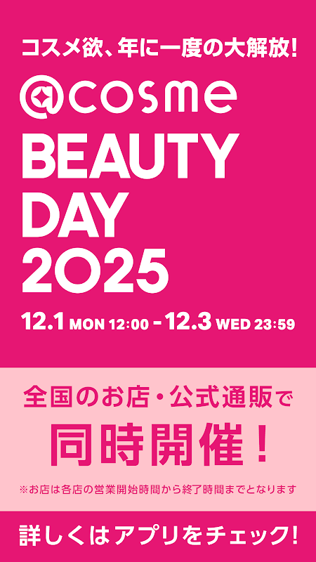 - @cosme BEAUTY DAYはあなたにとってのマイベストコスメと出会える特別なイベントです。BEAUTY DAY限定アイテムも公開しておりますので、ぜひチェックしてみてください。