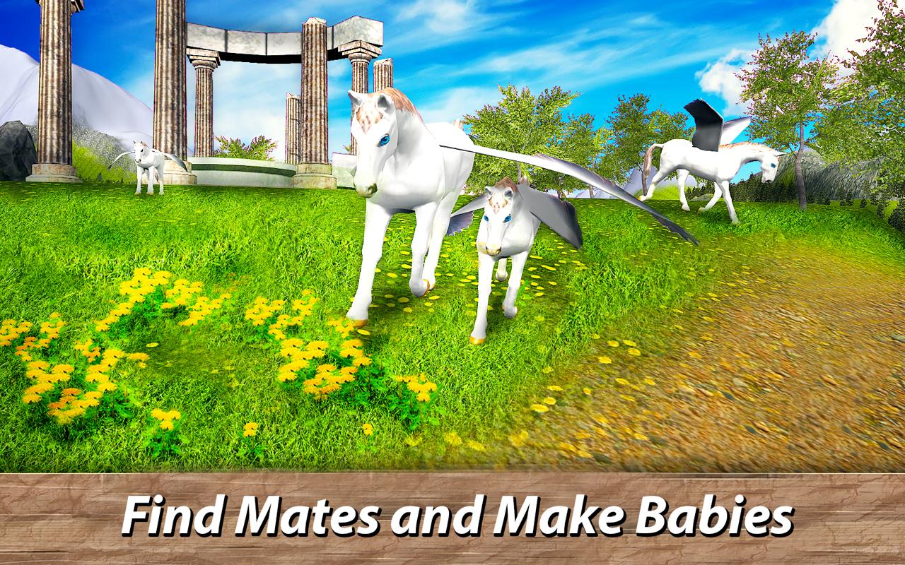 Pegasus necesita comida y agua como cualquier caballo. Pelear contra otros animales mágicos para sobrevivir en el reino de fantasía necesita que tu manada de pegasos voladores sea fuerte. Haga lo que sea que ayude a la supervivencia de la manada. ¡La magia peligrosa de un reino de fantasía desafiará a tu manada de caballos voladores!