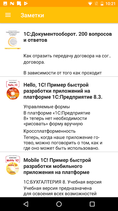 Также в приложении доступны все новые выпуски журнала БУХ.1С и другая, выпускаемая фирмой "1С" литература.