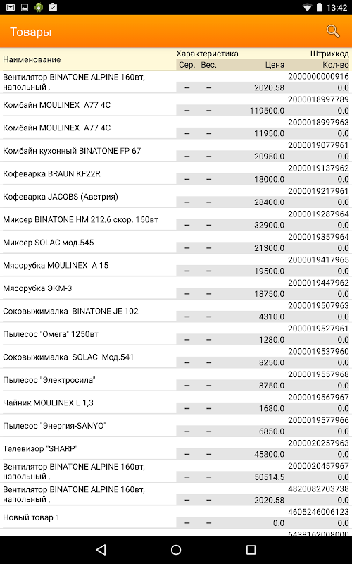 - bluetooth сканера штрихкода;