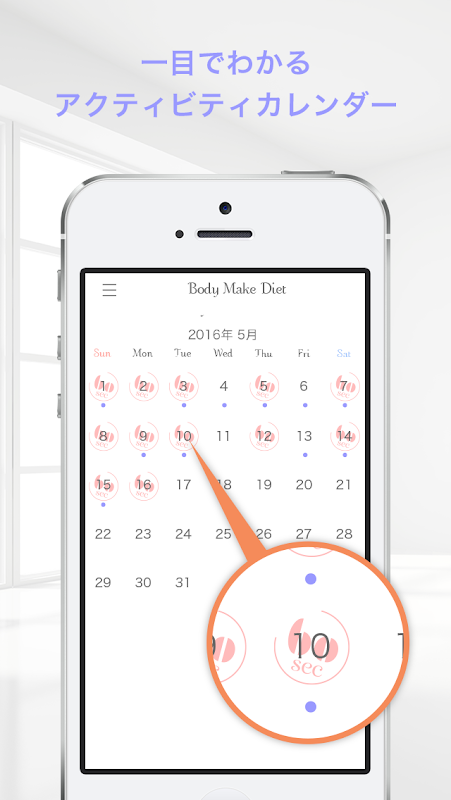 スケジュール通りにエクササイズが続けられる「アクティビティカレンダー」や