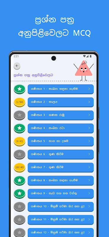 Esta aplicación innovadora está diseñada para mejorar el conocimiento de la materia de todos los niños desde el grado 1 hasta el grado 5, con un enfoque especial en aquellos en los grados 4 y 5 que se preparan para el examen de becas de grado 5 en Sri Lanka. Durante los últimos cinco años, un equipo de profesores de educación primaria especialmente capacitados y con experiencia, siguiendo el plan de estudios nacional, ha desarrollado cuidadosamente todas las preguntas y respuestas que aparecen en esta aplicación. Si bien el creciente apego de los niños (particularmente los nacidos en la era digital) a la tecnología moderna se ha convertido en una preocupación para los padres, es importante reconocer que debemos guiar a nuestros hijos junto con el avance global de la tecnología. En lugar de distanciarlos de los dispositivos digitales, deberíamos redirigir su atención hacia alternativas educativas que fomenten un compromiso y un aprendizaje significativos.