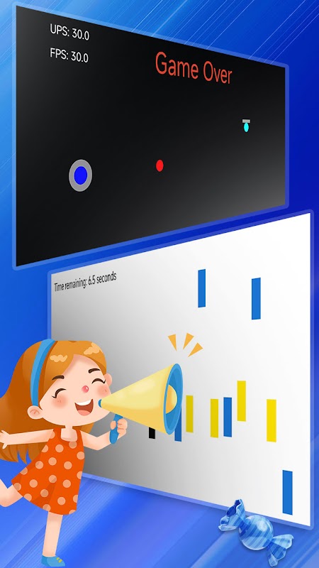 Toca la pantalla con una mano para mover la bola azul, evitando ser golpeado por las bolas rojas, mientras usas la otra mano para disparar balas, que pueden eliminar las bolas rojas.