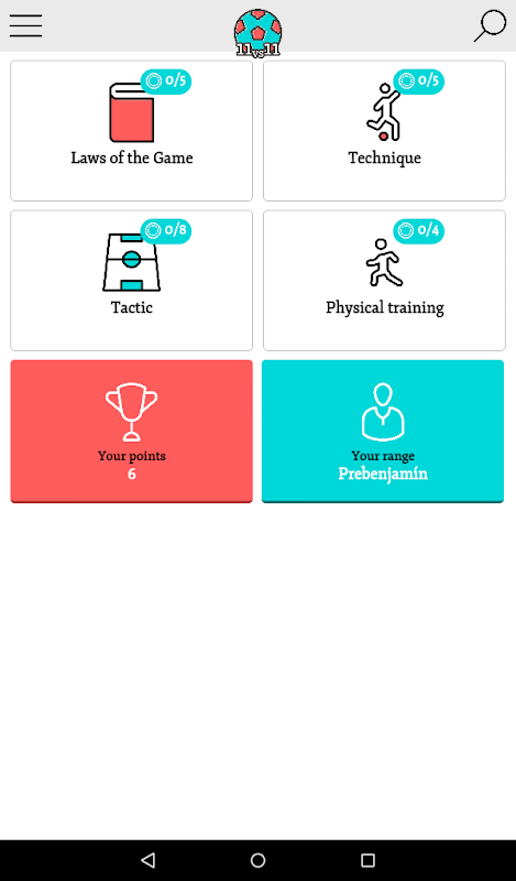 La aplicación consta de tres niveles (Basic, Advance y Pro) divididos en 4 temas (Reglas de Juego, Técnica, Táctica y preparación Física/Medicina deportiva) y 22 subtemas (11vs11). Cada subtema consta de vocabulario, definiciones, frases, ejercicios (match the Word, Skillwise, audio) y juegos (hangman y trivial).