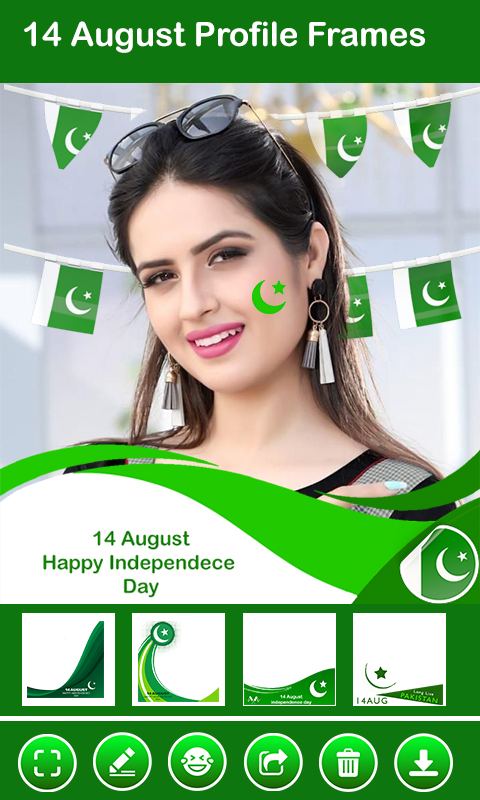 Dale a tu muro social un toque de color verde y blanco que representa la bandera de Pakistán y es la aplicación mejor formulada para los patriotas. Edite su marco de fotos del Día de la Independencia con un solo clic. ¡La aplicación de fotos del 14 de agosto le brinda los innovadores fondos de pantalla del marco de fotos del Día de la Independencia que son excepcionales!