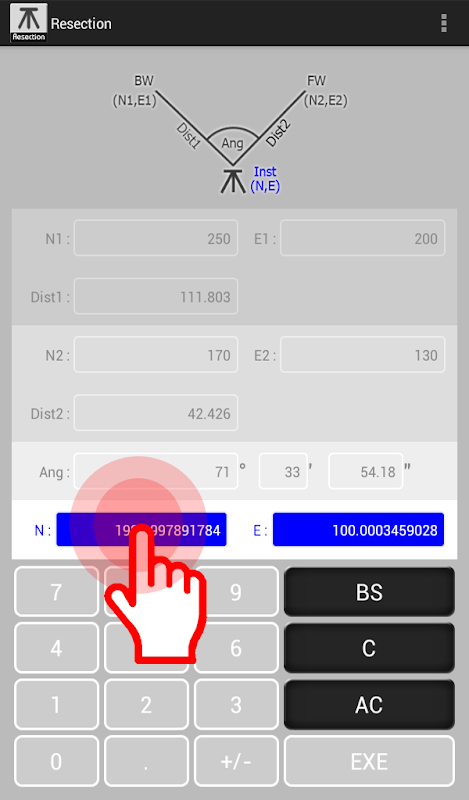 Encuesta utiliza una calculadora para calcular las coordenadas de la cámara.