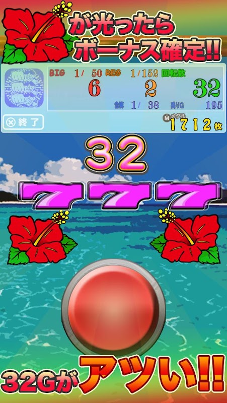 Una aplicación de tragamonedas completamente gratis donde puedes disfrutar de la emoción de las tragamonedas en alta mar Si tocas el botón y el hibisco brilla, ¡la bonificación está confirmada! ¡Experimentemos la tragamonedas costa afuera caliente con 32 juegos!