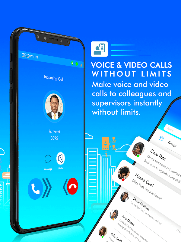 Realice llamadas de voz y video a colegas y supervisores al instante sin límites.
