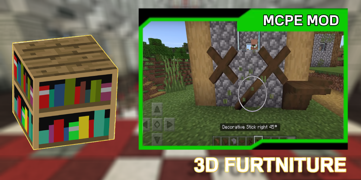 Destaca con el nuevo mueble mod. Decora tu mapa, casa, fortalezas en un estilo antiguo único. Mesas y sillas reales, armarios y mesitas de noche con animación al abrir. Posavasos y canastas con frutas y otros alimentos, una biblioteca con libros, decoraciones espectaculares para el techo de la casa y su interior. Este mod te ayudará a hacer una renovación real y cambiar el interior de tu mundo. Casas de piedra gris ordinarias, puede cubrir con un color diferente. Mucha elaboración de nuevos artículos. Posibilidad de construir a partir de palos de madera en diferentes ángulos. Se agregó un soporte de espada especial con una piel fresca y puertas blindadas que lo protegerán de varios monstruos. Transforma tu mundo con un nuevo estilo con el mod de muebles 3D e invita a tus amigos a un divertido juego.