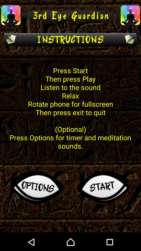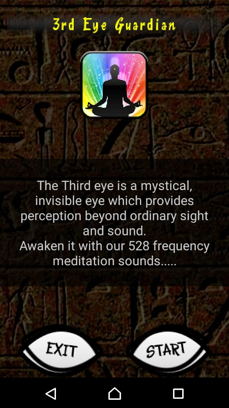 Esta es una aplicación de meditación que con el tiempo te ayudará a dormir mejor, relajarte, despertar el tercer ojo y ser uno contigo mismo. El tercer ojo es un ojo místico e invisible que proporciona una percepción más allá de la vista y el sonido ordinarios. El tercer ojo se refiere a la puerta que conduce a los reinos internos de la conciencia.