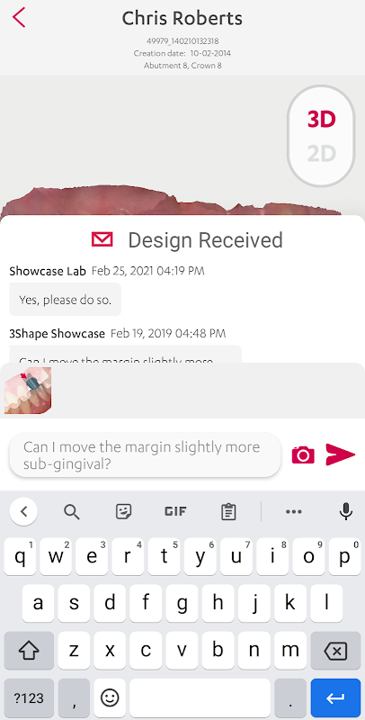 Los dentistas y técnicos de laboratorio ahora pueden comunicarse convenientemente a toda hora y en cualquier lugar. Comparta escaneos y diseños en 3D, comparta imágenes y comentarios, controle su trabajo, ahorre tiempo y reduzca el número de reconstrucciones.