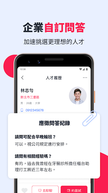Está especialmente diseñado para el reclutamiento empresarial y el reclutamiento de talentos. Publica el reclutamiento y la búsqueda de talentos en cualquier momento y en cualquier lugar. El teléfono móvil recibirá talentos y los solicitará activamente por primera vez sin perder información, lo que hará que su reclutamiento sea más fácil, rápido y efectivo.