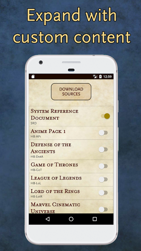 Toda la información proporcionada por la aplicación se puede encontrar en la versión 5.1 del Documento de referencia del sistema (SRD) y está sujeta a los términos de la versión 1.0a de la Open Gaming License (OGL) de Wizards of the Coast (WotC).