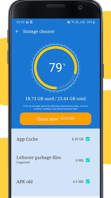 * Limpie los archivos basura y el espacio de almacenamiento.