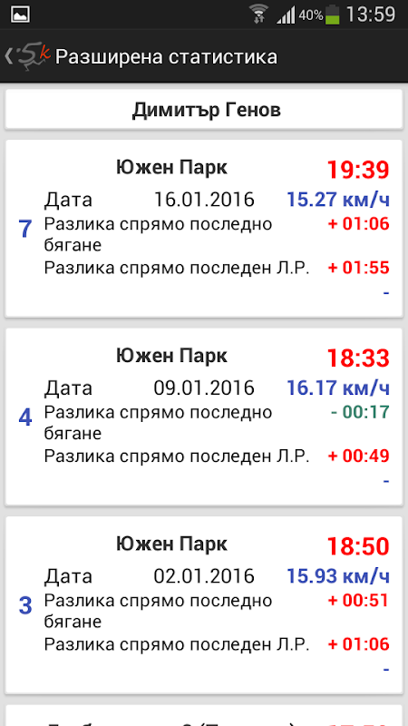 Con esta aplicación se puede realizar un seguimiento de resultados y estadísticas de 5kmrun.bg
