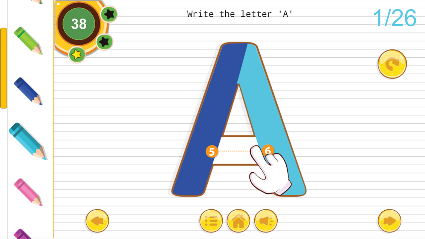 Use the Hand ✍️ or Mobile Pen ✏️ to trace and fill the letters (Lowercase,Uppercase) , Numbers.