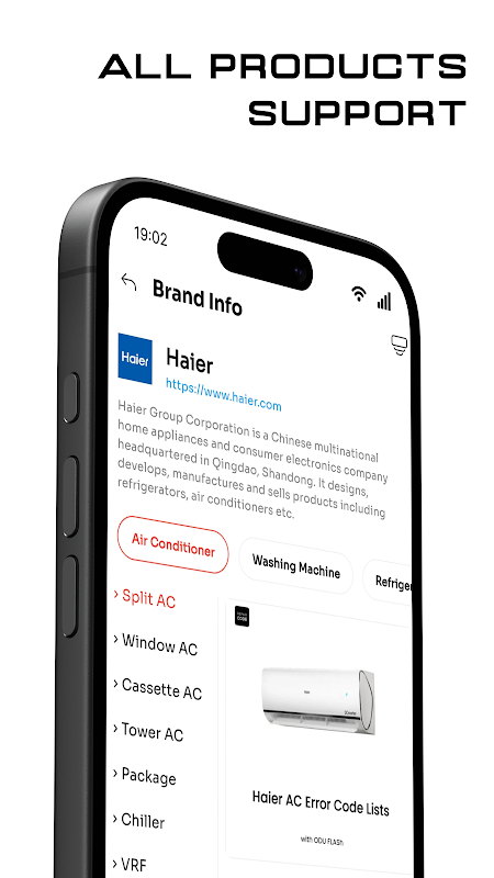 RepairCode ofrece una amplia base de datos que cubre códigos de error de aires acondicionados, refrigeradores, lavadoras, microondas y otros electrodomésticos. Es su aplicación de código de error de CA, aplicación de código de error de refrigerador y aplicación de código de error de todas las marcas para solucionar problemas de marcas como Carrier, Samsung, Daikin, Whirlpool, Toshiba, Electrolux, Honeywell, Frigidaire, GE, Fujitsu, Hitachi y más.