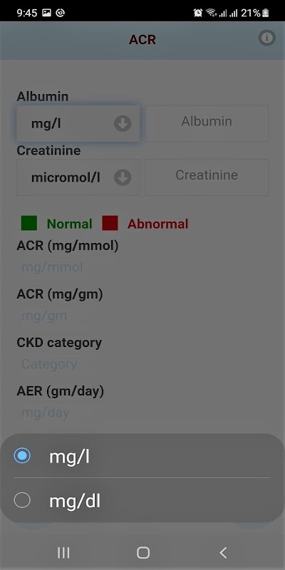 Calculadora de la relación de creatinina de albúmina (ACR)