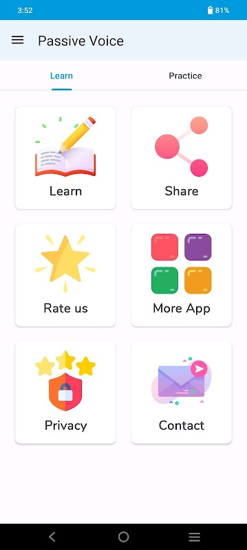 La voz pasiva es el tema más importante de la gramática inglesa. Para que la voz sea fácil de entender, se ha creado esta aplicación. Todos los temas están cubiertos con respecto a la voz.