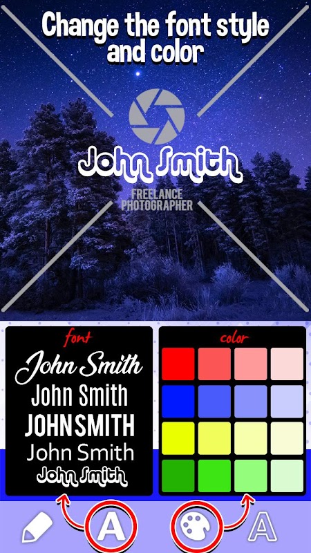 Si necesita un texto inteligente en la foto con las mejores fuentes y una forma elegante de escribir en la aplicación de imágenes, entonces necesita instalar esta aplicación de marca de agua fotográfica. Agregue su propia marca de agua del logotipo y el texto a las fotos en diferentes colores. Puede aplicar una firma de derechos de autor para fotos en unos segundos y proteger sus imágenes de personas que no tienen una licencia para usarlas. ¡Crea una marca de agua, colócala sobre tu imagen y el trabajo está hecho! Se sorprenderá de lo que puede hacer este texto en el editor de fotos. Incluya esta marca de agua libre de derechos de autor para sus fotos hoy y ¡disfrute este Marca de Agua en Fotos!
