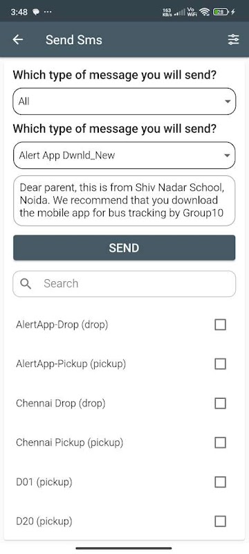 Esta aplicación permite al Administrador de Transporte Escolar realizar cambios en el vehículo/ruta.