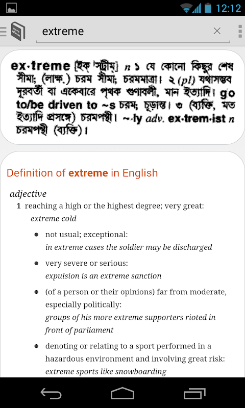 - Es un Desconectado diccionario que contiene tanto Inglés definición-a-Bangla y definición-Inglés-Inglés a para las palabras.