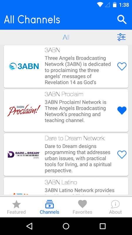La aplicación AdvenTV ofrece un fácil acceso a la programación en línea Adventista del Séptimo Día en vivo desde una variedad de canales en línea gratuitos. La aplicación proporciona acceso a más de 38 de los mejores canales de 15 de las mejores redes adventistas. Puede ver transmisiones de 3ABN, Amazing Facts, Amazing Discoveries, Better Life Broadcasting Network, Blue Mountain TV, Firstlight Broadcasting, Good New Television, Hope Channel, LOGO Tv, Loma Linda Broadcasting Network, MissionTV, Secrets Unsealed, Paraiso TV y más. Si tiene favoritos, también puede guardarlos para verlos rápidamente o usar nuestra búsqueda avanzada para descubrir otros nuevos. AdvenTV es un servicio gratuito de Breath of Life Fellowship.