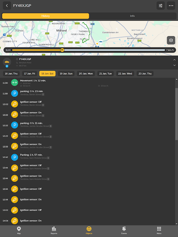 Aplicación móvil de un sistema de monitoreo de vehículos.