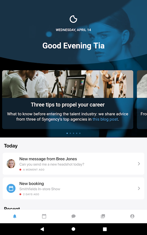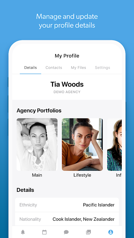 Administre todos los aspectos de su carrera como modelo y talento con Syngency Mobile.