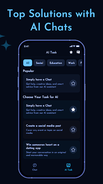 Con AI Chat, tiene acceso a asistencia personalizada para todo tipo de proyectos de escritura, ya sean ensayos, composiciones, publicaciones en redes sociales o poemas. Básicamente, la aplicación puede ayudar con cualquier tarea, como crear una frase única e inolvidable o incluso crear una canción original. ¡Así es! Este ayudante de IA no solo es inteligente sino también creativo. ¡Deja volar tu imaginación con él!
