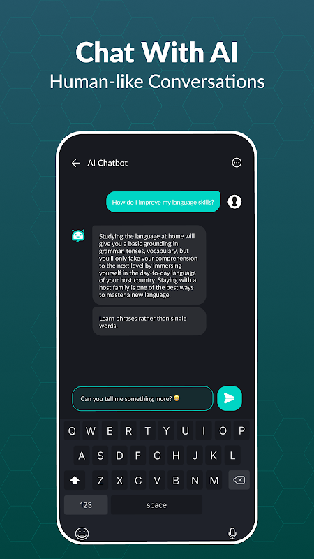 Redactor de contenidos: generador de texto con IA para chat La aplicación de chatbot asistente de la aplicación de chat con IA le permite profundizar en una amplia gama de temas durante sus conversaciones. Ya sean películas, música, deportes o viajes, puedes charlar sobre cualquier cosa que despierte tu interés.