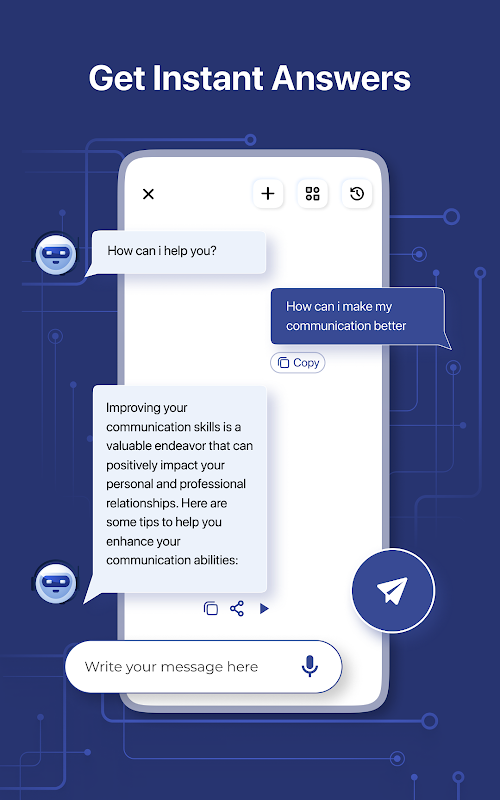 Esta aplicación AI Chat es multipropósito y puede ayudar a los usuarios en una amplia gama de tareas, incluida responder consultas, ofrecer sugerencias, brindar orientación e incluso participar en discusiones informales. Su base de conocimientos se mejora continuamente a través del aprendizaje automático, garantizando que se mantenga actualizada y pertinente. Además, la aplicación cuenta con un diseño fácil de usar, con una interfaz sencilla que simplifica la interacción con el chatbot.