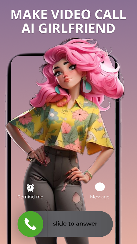 La aplicación AI está diseñada para utilizar la última tecnología para aliviar el tiempo aburrido. Configure el identificador de llamadas de la novia falsa para llamar y elija el temporizador para llamar por video o audio.