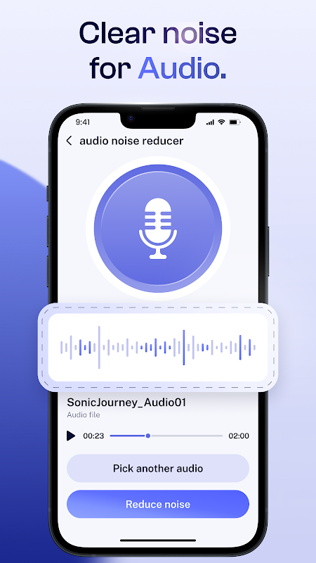 Elimine el ruido de fondo y transforme sus grabaciones de audio y video con AI Noise Reducer, la solución definitiva para la creación de contenido sin ruido. Impulsada por Inteligencia Artificial avanzada, esta aplicación está diseñada para eliminar el ruido de fondo no deseado tanto del audio como del vídeo sin esfuerzo. Si eres creador de contenido, podcaster, cineasta o alguien que busca mejorar sus grabaciones, esta aplicación es tu herramienta ideal para obtener un sonido nítido.