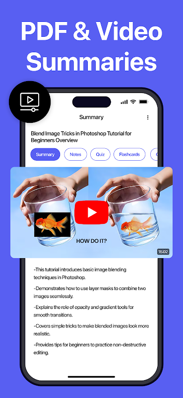 • Vídeos y podcasts: resuma vídeos, seminarios web y podcasts de YouTube para ahorrar tiempo y conservar cada información clave.