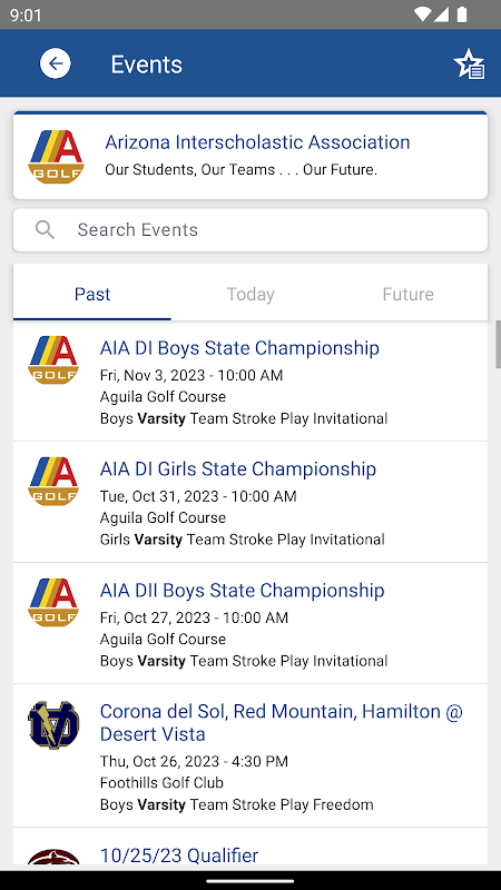 Combinamos la tecnología de escritorio y aplicaciones móviles en colaboración con la Asociación Interescolar de Arizona (AIA) para permitir que los jugadores, entrenadores, directores deportivos y espectadores de todo el mundo para ver las tablas de clasificación en vivo durante los torneos de golf de la escuela secundaria. El día del partido, las puntuaciones se almacenan en la interfaz de puntuación fácil de usar para que los espectadores y los competidores no perder de vista su ronda en tiempo real.