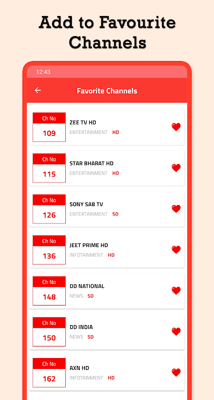 ✦ Favoritos: puede hacer que su canal de TV digital sea favorito - aplicación DTH TV Channel.
