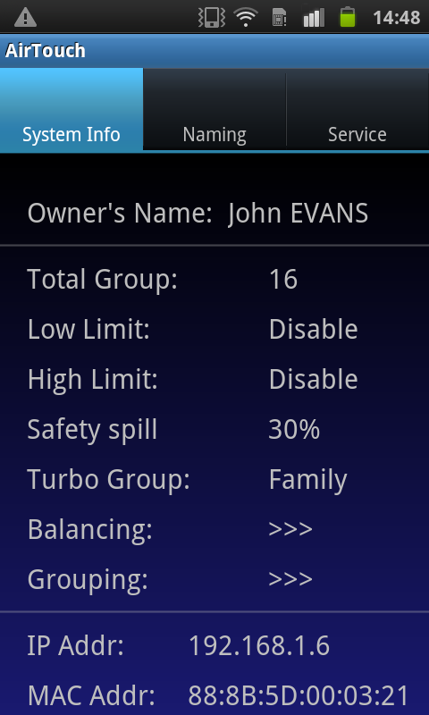 Controle su sistema ZONEMASTER zonificación y aire acondicionado (marcas y sólo modelos seleccionados) de sus dispositivos Android. Esta aplicación, que se utiliza en conjunción con el sistema de control de zona AirTouch, está diseñado para ofrecer un control sin igual de la cantidad de aire y por lo tanto aire acondicionado entregado a todas las partes de su casa, simplemente y fácilmente con tu Android tablet o móvil. Proporciona mayor parte de las funciones ya través de la pantalla táctil montada en la pared. Permite el control de las funciones siguientes: