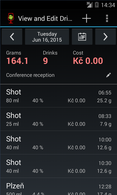 AlcoDroid es una calculadora de alcohol rastreador consumo, bebidas diario y el contenido de alcohol en sangre. AlcoDroid le ayuda a obtener un mejor manejo de lo que bebes y cambiar sus hábitos de consumo. Opcionalmente también realiza un seguimiento de los costos de sus bebidas.