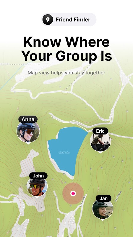 Ve a tu grupo en el mapa durante tus aventuras. Ya sea que alguien tome una ruta diferente o se detenga a disfrutar del paisaje, es fácil estar al tanto de todos y reconectar cuando sea necesario.