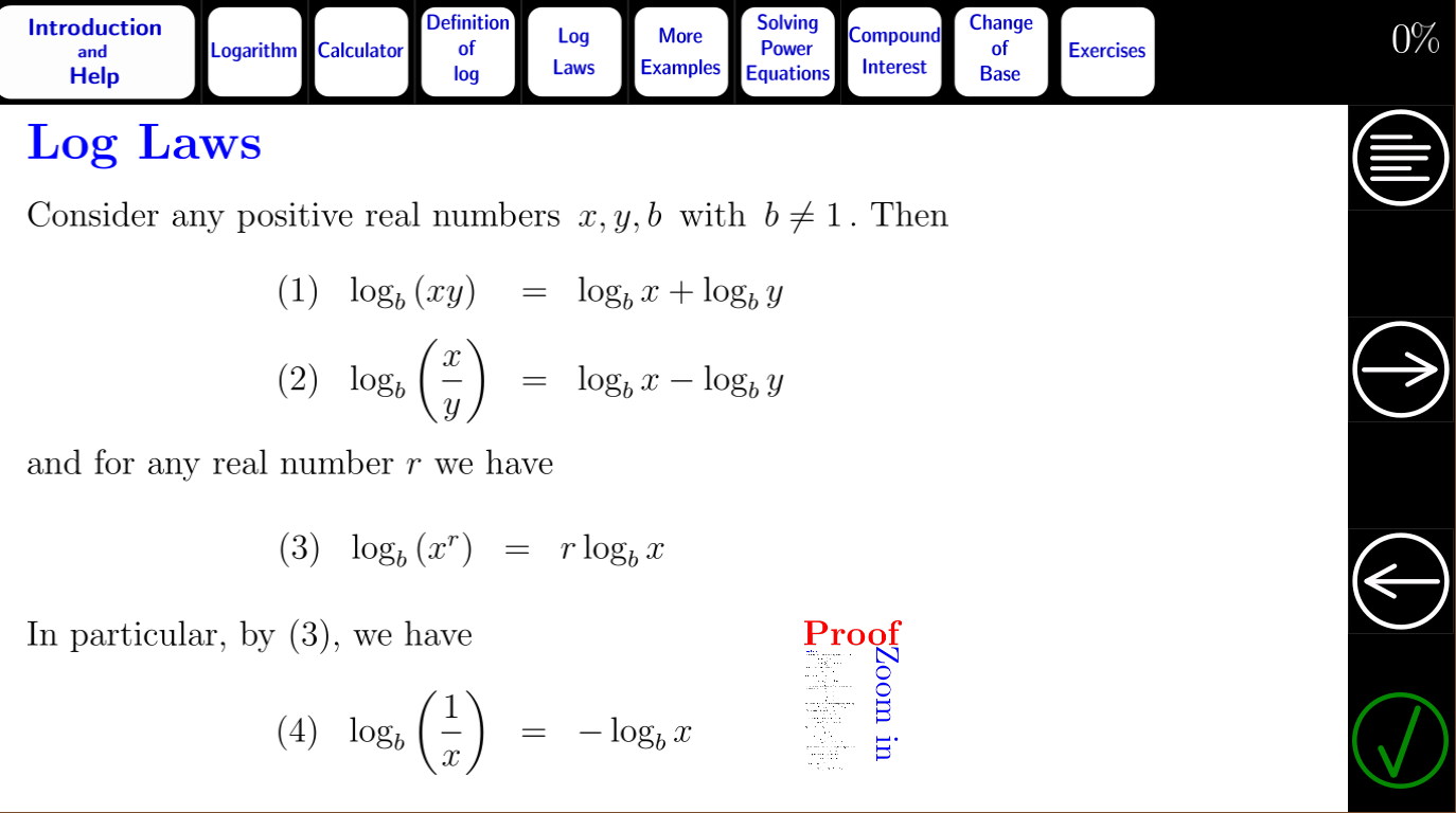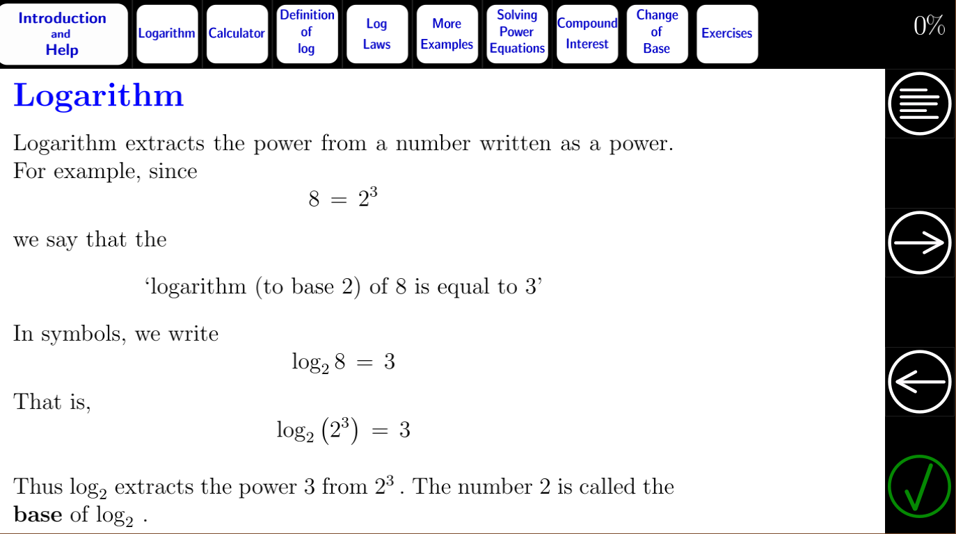 Tutorial interactivo de matemáticas para logaritmos I