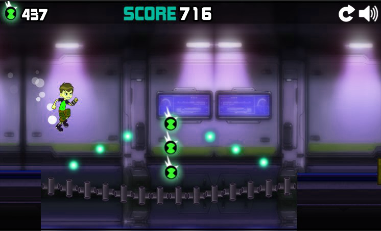 On your way to victory, make sure to collect the green floating orbs. They will boost your score a little. Furthermore, there are also some tokens with an Omnitrix on them. Make sure to collect them to transform into aliens.