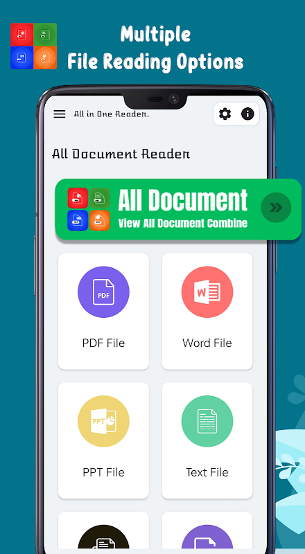 All Document reader is a fast & simple app to read Word, PDF, Excel, and PPT. while using this document reader app, you can view all your documents on your Mobilephone. This All Document Reader Fast Read is used to read, view, and share all types of document files. Quick document reader in android recommended to you. This document viewer is used to view multiple files like Docx, PPT, Excel, XLM, HTML, RTF, and XLS. Take lectures in any format of documents & read them on your Cellphone. All Document reader supports multiple compatibilities with office viewer formats including DOC, PowerPoint, XLSX, PPT, and PDF Reader. Also, you can open your data sheets super fast that are on XlS files word documents, and pdf files. All Documents Reader is a PDF viewer used to view all pdf files & open any document with just one tap on the document reader option. Also, you can open your documents stored on internal memory or SD cards And download files or those sent as email attachments. Doc reader is super fast quick and smooth. All Document Reader: PDF, excel, word, and Documents app will work for you as a portable pocket doc reader and maintain & manage all files and documents in PDF File, PPT, XLM, HTML, RTF, XLS, TXT, and Word format.