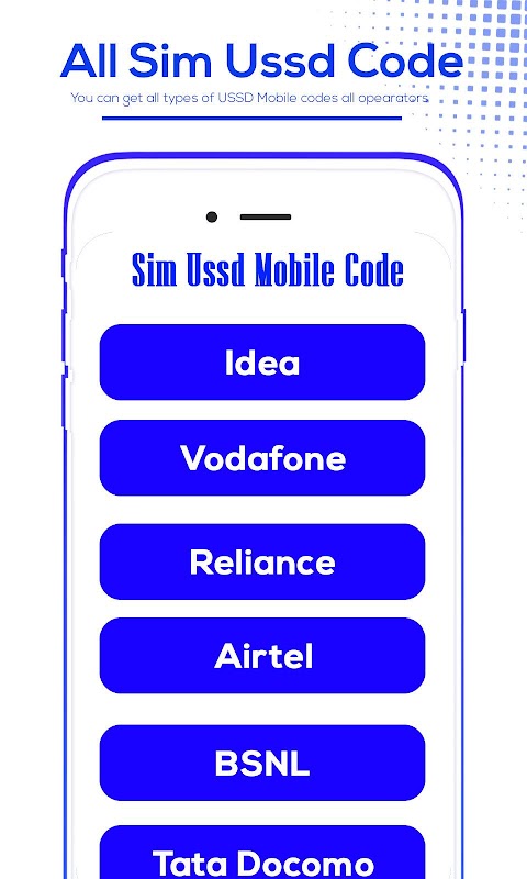 All Network USSD Codes App will help to find out the USSD Mobile Codes for All Mobile operators in India. Also this application can works without internet so you can access all USSD codes even if you are not connected to the internet.